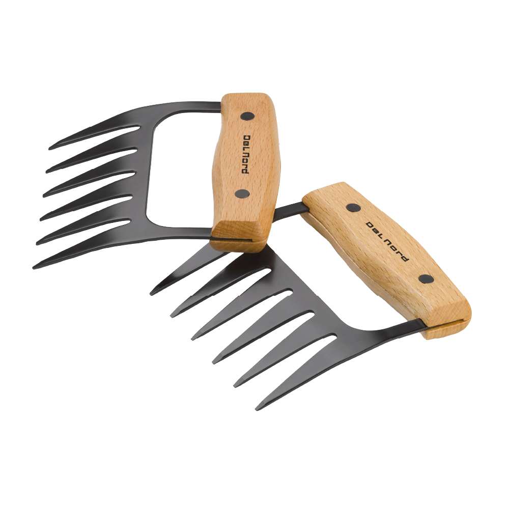 Deze vleesklauwen zijn een perfect hulpmiddel voor iedereen die van pulled-meat houdt. Met dit metalen gereedschap met zwarte tefloncoating en houten handvat, kan het vlees snel worden omgedraaid. Scheur daarna het vlees eenvoudig uit elkaar tot ‘pulled meat’ met behulp van deze klauwen. Wordt geleverd in een geschenkverpakking.